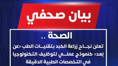 «الصحة» تعلن نجاح زراعة الكبد بتقنيات الطب «عن بُعد» كنموذج عملي لتوظيف التكنولوجيا في التخصصات…
