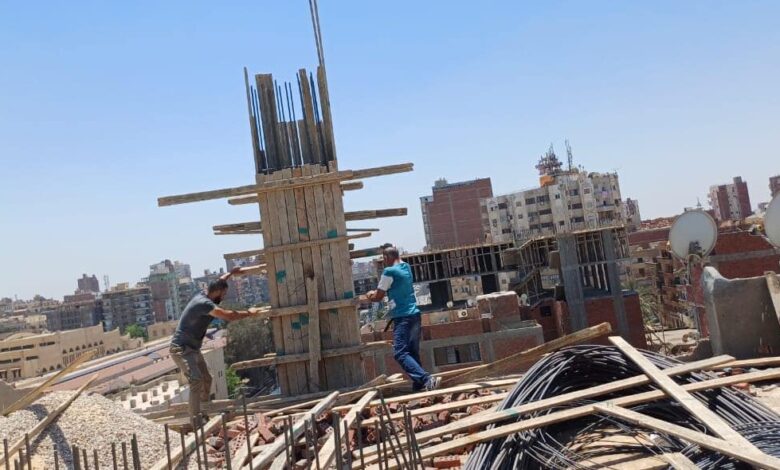الحالة الأولى عبارة عن إزالة شدة خشبية مُعَدة لتنفيذ صبة خرسانية (بدون ترخيص) لأعمدة دور سادس علوي بشارع السكة الحديد.