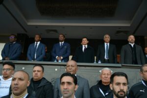 وتواجد وزير الرياضة بالمقصورة الرئيسية بإستاد القاهرة لمتابعة المنتخب، ومؤازرة اللاعبين لتقديم مباراة قوية فى افتتاح البطولة التى تستضيفها مصر خلال الفترة من ١٨ فبراير الجارى حتى ١١ مارس المقبل.
