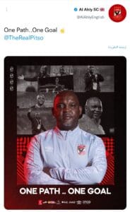 وجه الحساب الرسمي للنادي الأهلي على موقع التواصل الاجتماعي تويتر. رسالة دعم للمدرب الجنوب إفريقي بيتسو موسيماني. المدير الفني للفريق الأول لكرة القدم بالنادي.