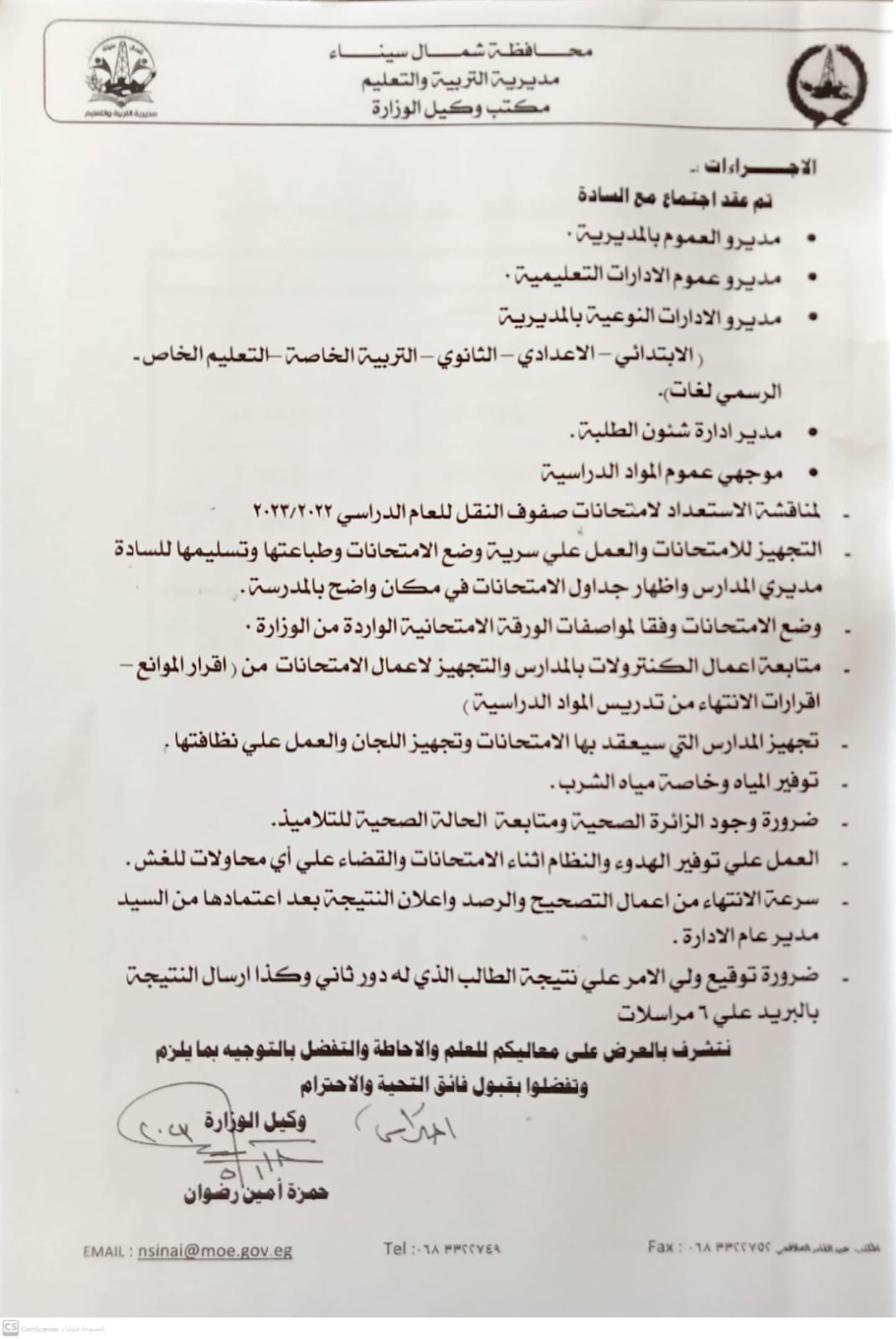 كما أشار إلى أن المديرية شددت على منع أجهزة المحمول باللجان، وأهمية دور مسؤول الأمن باللجنة وتقدير الدرجات أولا بأول والتزام الدقة أثناء رصد الدرجات والالتزام بنموذج توقيع المقدرين.