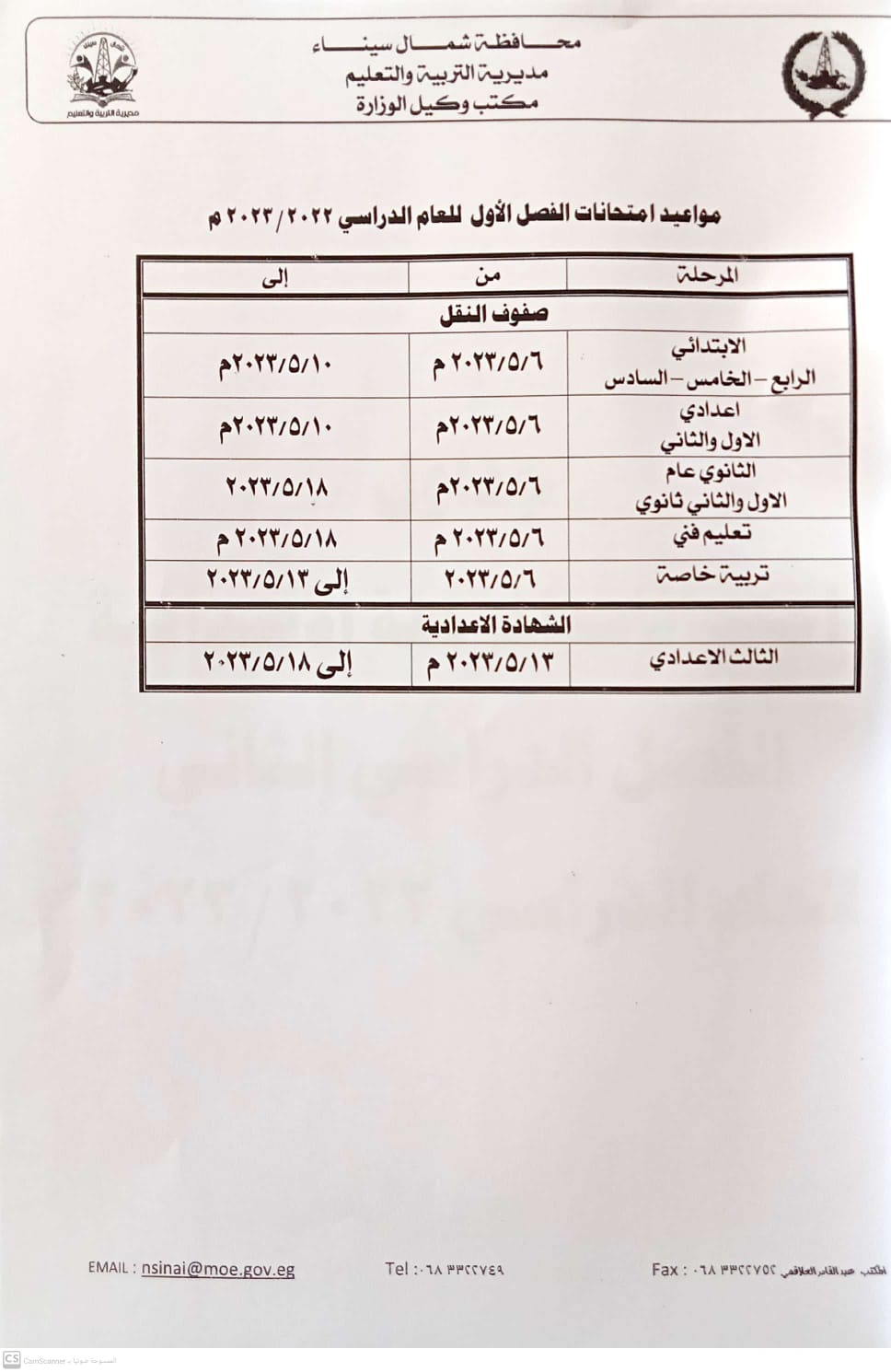 تابع اللواء الدكتور محمد عبدالفضيل شوشة، محافظ شمال سيناء، اليوم السبت، امتحانات صفوف النقل للفصل الدراسي الثاني ونهاية العام الدراسي الجاري، والتي انطلقت اليوم وتستمر حتى 18 مايو الجاري.