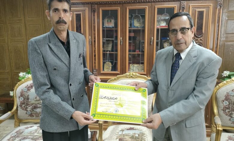 محافظ شمال سيناء يكرم موظف بمدرسة يوسف الصديق بالعريش لتميزه في العمل