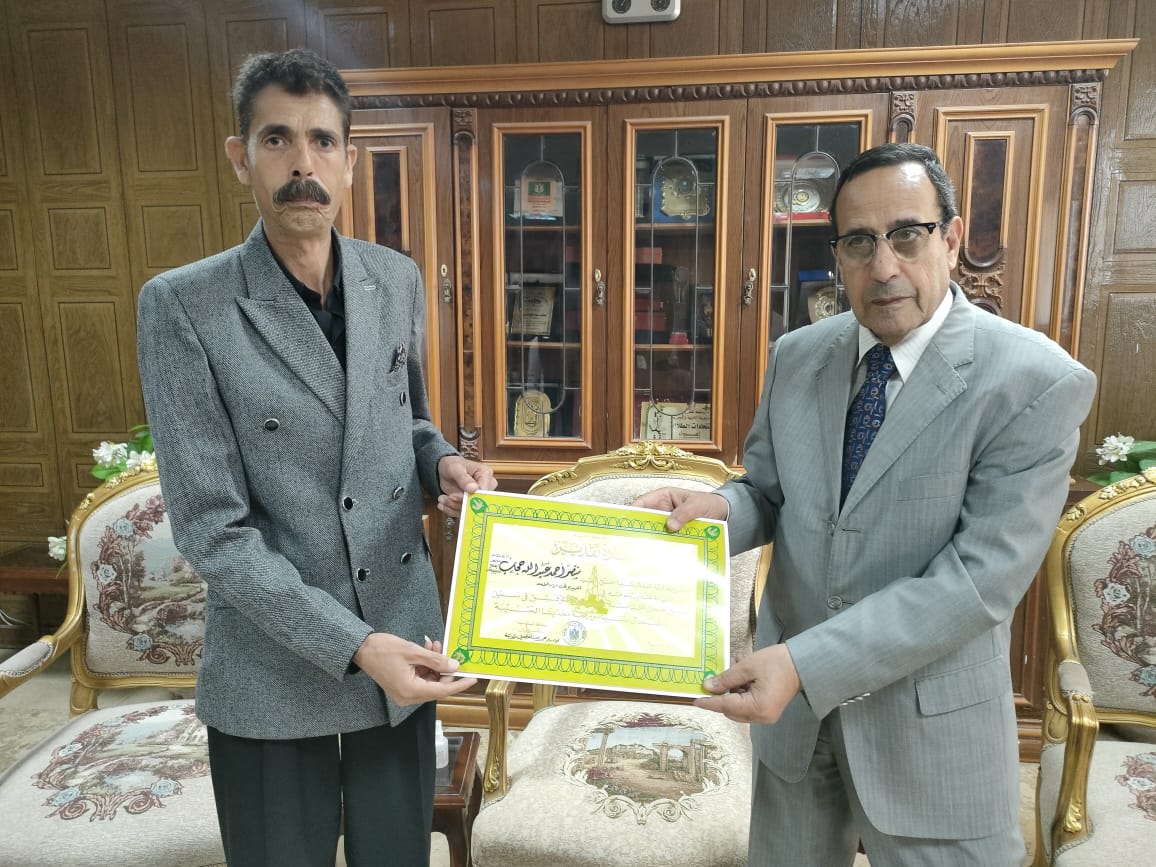كرم اللواء الدكتور محمد عبد الفضيل شوشة، محافظ شمال سيناء، اليوم الثلاثاء، منتصر أحمد عبد الله حجاب، إداري في مدرسة يوسف الصديق للتعليم الأساسي بالعريش، وذلك بمنحه مكافأة مالية وشهادة تقدير، لجهوده وتميزه في العمل.