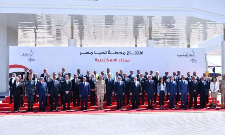 السيد الرئيس عبد الفتاح السيسي يشهد افتتاح محطة “تحيا مصر” متعددة الأغراض بميناء الأسكندرية الكبير، ورفع العلم على سفينة وادي الملوك، أكبر وأحدث سفن الأسطول التجاري المصري، في إطار خطة مصر للتحول لمركز لوجستي وتجاري عالمي، من خلال مشروعات قومية عملاقة تشمل إنشاء عدد من المحاور والممرات اللوجستية تربط البحرين الأحمر والمتوسط، وفي سيناء، وتشييد الموانئ المتطورة والمناطق الصناعية مع تحديث منظومات الإدارة والجمارك لزيادة التنافسية وفقاً للمعايير العالمية المتعارف عليها، بما يحقق زيادة الدخل القومي لاسيما بالعملات الأجنبية وتوفير فرص عمل متميزة للشباب.