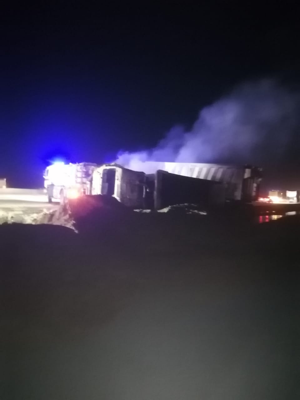 لقي شخصان مصرعهما وأصيب شخصين أخرين إثر وقوع حادث تصادم سيارة نقل بمقطورة وملاكي في الكيلو 64 طريق مطروح الإسكندرية بنطاق مركز الحمام، مما أسفر عن إشتعال النيران في السيارة الملاكي، وعلي الفور انتقلت سيارات الإسعاف إلى موقع الحادث وتقديم الإسعافات الأولية للمصابين، وجري نقل الوفيات والمصابين إلى أقرب مستشفى، وأخطرت شرطة النجدة اللواء السيد سلطان مساعد وزير الداخلية مدير أمن مطروح بالحادث.