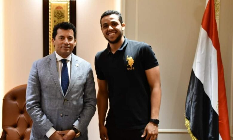 وزير الرياضة يلتقي مصطفي عسل بطل العالم فى الاسكواش