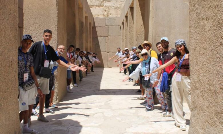 نظمت وزارة الشباب والرياضة من خلال الإدارة المركزية لتنمية الشباب-الإدارة العامة للبرامج الثقافية والفنية ، جولة سياحية للوفد الشبابي المغربي ، بمنطقة الأهرامات ، ضمن فعاليات برنامج تبادل الوفود الشبابية بين مصر والمغرب ، والذي يتم تنفيذه خلال الفترة من ٣ – ١٠ أغسطس الجاري ، بمشاركة ٢٠ شاب وفتاة من المملكة المغربية .