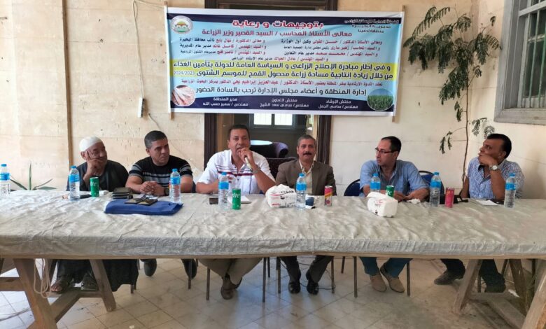 تم عقد ندوة إرشادية بمنطقة ادفينا بناء علي توجيهات معالي وزير الزراعة السيد القصير والأستاذ الدكتور حسن الفولي مدير الهيئة العامة للإصلاح الزراعي وبرعاية الدكتورة نهال بلبع ناىب محافظ البحيرة بضرورة التواجد الميداني والتلاحم مع الفلاحين للوقوف على مشاكلهم والتدخل الفوري بالحل…وكان اللقاء بحضور الدكتور عبدالعزيز ابراهيم من مركز البحوث الزراعية الذي تناول طرق الزراعة الحديثة لزيادة الانتاجية والزراعة علي مصاطب وتسوية الأرض جيدا والزراعة بالسطارة لترشيد استهلاك المياة والتقاوي والوقود..وقد أكد المهندس كامل غانم مدير عام مديرية الإصلاح الزراعي بالبحيرة في كلمته علي ضرورة تنفيذ توصيات مركز البحوث الزراعية للتوسع الأفقي والراسي في زراعة القمح لانه محصول أمن غذائي قومي وقدم التهنئة للحضور بمناسبة عيد الفلاح واخص فلاحي الإصلاح الزراعي موضحا أن الفلاح المصري دائما هو صمام أمان الوطن وأن الدولة تضعة نصب عينيها بحرصها علي تسويق محاصيله وتوفير التقاوي والمبيدات والأسمدة والمخصبات الامنه ..مؤكدا علي ضرورة تطوير أداء العاملين في قطاع الزراعة بتقديم خدمه متميزة للفلاح تواكب العصر والتفاعل مع شكواه ..ووجه رساله للفلاحين بضرورة الحفاظ علي نعمة الوطن والأمن والأمان والحفاظ علي هذه النعمة ..كما نقل للحضور متابعة الدكتورة نهال بلبع ناىب محافظ البحيرة للمستجدات وأنها بصدد توقيع بروتوكول مع صندوق الاسكان الاجتماعي لتوفير شقق لأبناء الفلاحين كبديل عملي للحفاظ على الرقعة الزراعية وعدم التعدي عليها…وأكد غانم أن الدكتور حسن الفولي مدير الهيئة العامة للإصلاح الزراعي مهتم جدا بتملك فلاحي البحيرة أراضيهم من خلال تقنين أوضاعهم طبقا للقانون 182 لسنة 2018 وكذلك تسجيل وإشهار كافة المساحات ولاية الهيئة حفاظا على المال العام