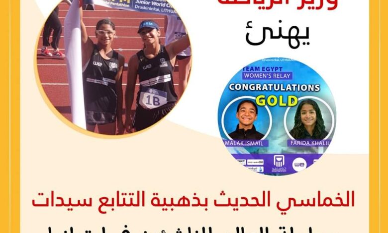 وزير الرياضة يهنئ الخماسي الحديث بذهبية التتابع سيدات ببطولة العالم للناشئين