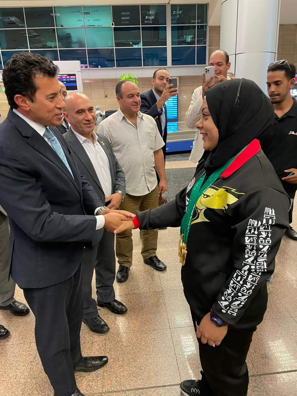 وزير الرياضة يستقبل بعثة المنتخب المصري لرفع الأثقال