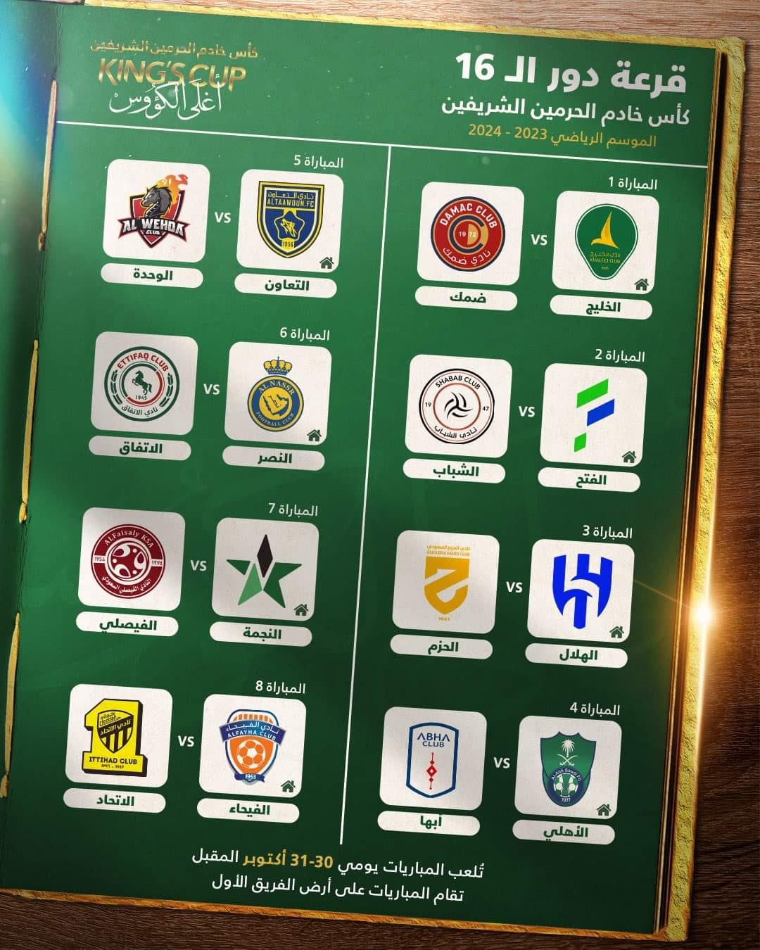 تفاصيل قرعة دور ال 16 لبطولة كأس خادم الحرمين الشريفين