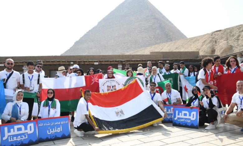شباب الوفود العربية يزورون الاهرامات وأعلام الدول العربية ترسم الملحمة