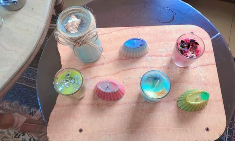 ورشة الشموع بمركز شباب ميت طريف ، بمحافظة الدقهلية ، حيث تم التعرف انواع الشموع واكتساب مهارات عمل الفواحات .