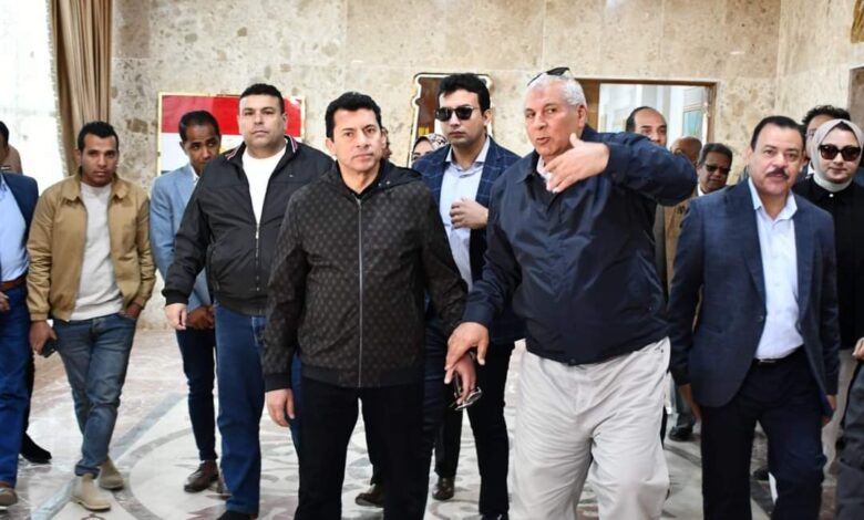 وزير الرياضة ومحافظ الوادى الجديد يتفقدان المجمع الحكومى الجديد والمدينة الرياضية