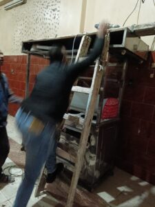 كما تابع ايقاف اعمال تشطيب محل بدون تصريح بشارع سيد عبد الله من شارع الدكتور وتم سحب المعدات وايداعها بمخزن الحى واتخاذ الإجراءات القانونية حيال المخالف .