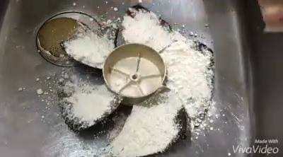ثم قومي بفركه بالدقيق جيدًا، وعندما تلاحظين امتصاص الدهون والأوساخ، افركي الشفاط باستخدام الليفة الناعمة، حيث يعمل الدقيق على التخلص من الترسبات والأتربة والدهون المتراكمة فوق الجهاز.