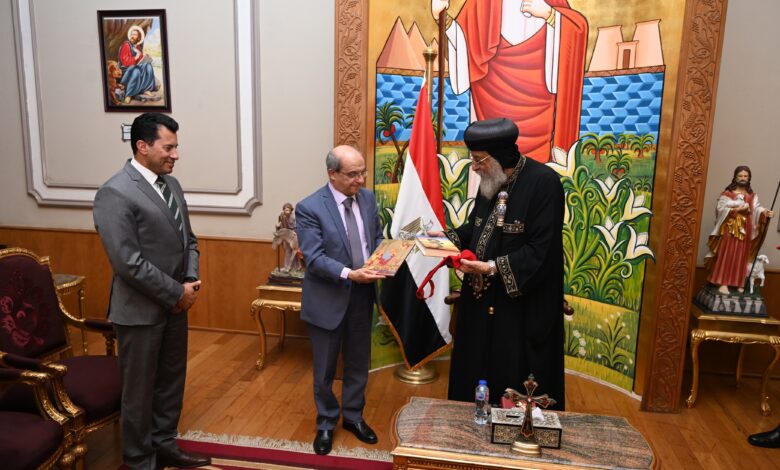 البابا تواضروس الثاني يستقبل وزير الشباب والرياضة ونظيره اللبناني بالمقر البابوي بالعباسية