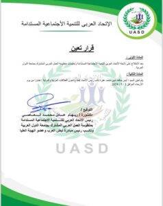 دعم التنمية الاجتماعية المستدامة في الدول العربية وتعزيز التعاون العربي في مجال التنمية الاجتماعية وبناء شراكات قوية مع المنظمات الدولية رفع مستوى الوعي بأهمية التنمية الاجتماعية المستدامة في المجتمعات العربية و وإيمانًا منّا بِكفاءة المهندس ايمن حافظ عفرة وإمكانياته الكبيرة، فإنّنا نثق بأنّه سيُساهم بشكل كبير في تحقيق هذه الأهداف، وسيكون له دور بارز في دفع مسيرة التنمية الاجتماعية المستدامة في الوطن العربي إلى الأمام.