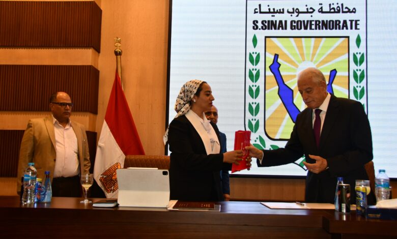 محافظ جنوب سيناء يكرم نائبة المحافظ تقديرا لجهودها المتميزة على أرض المحافظة