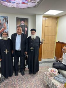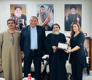 وكان في استقبال أعضاء الحزب؛ القمص إبراهيم كاهن كنيسة العذراء مريم بنجع حمادي.