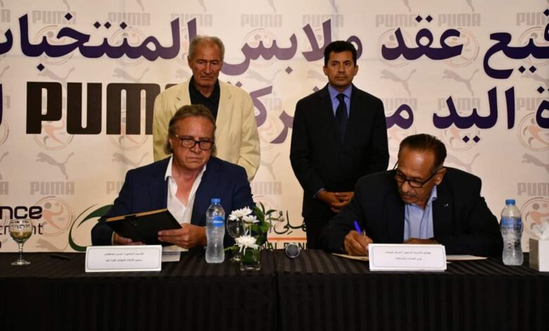 وزير الشباب والرياضة يشهد حفل توقيع عقد ملابس المنتخبات الوطنية لكرة اليد