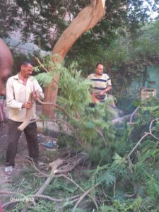 أيضًا، تم إزالة شجرة بعد سقوطها أمام العقار ١٨ شارع السحاب من شارع أحمد كامل، دون تسجيل أي إصابات. كما تم تنفيذ حملة نظافة وكنس وتجريد ورفع مخلفات في ميدان الحسينية وشارع خاتم المرسلين وشارع عثمان محرم، بالتعاون مع الهيئة العامة للنظافة والتجميل.