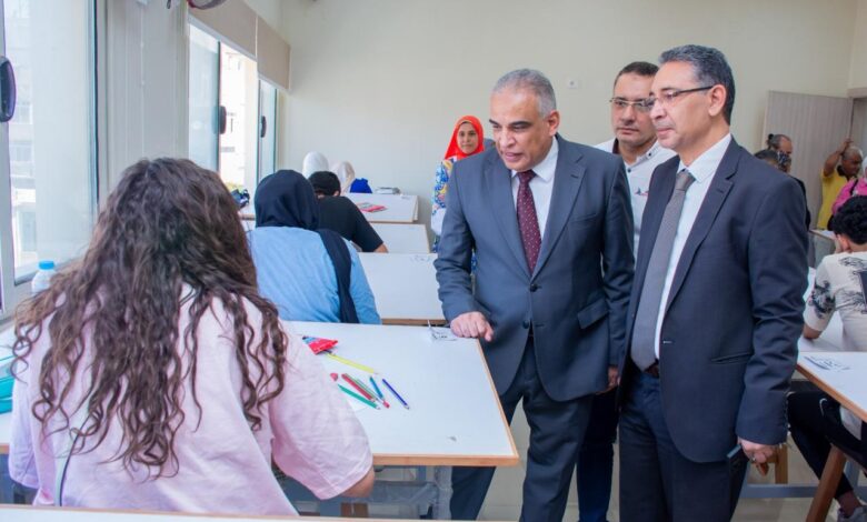 خلال جولة تفقدية رافقه فيها نائب رئيس الجامعة للدراسات العليا والبحوث:الدكتور محمد حسين يتابع انتظام اختبارات القدرات بكلية الفنون التطبيقية