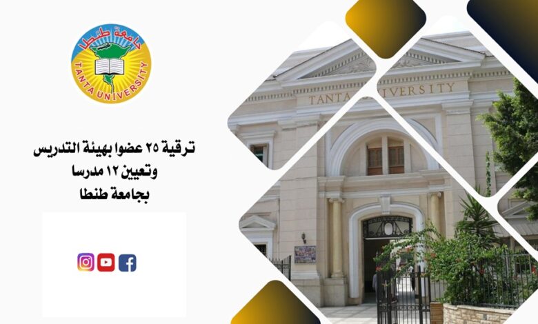 ترقية 25 عضوا بهيئة التدريس وتعيين 12 مدرسا بجامعة طنطا