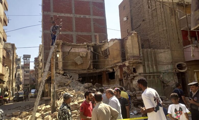 شاهد ..تهشم سيارة بسبب انهيار منزل مكون من طابقين بطنطا دون اصابات وخسائر بشرية.. صور