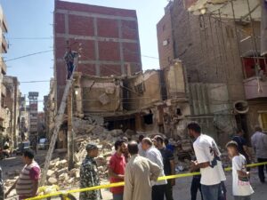 كما أسفرت الحادث عن تهشم سيارة أجرة “تاكسي” كانت متوقفة أسفل العقار المنهار.