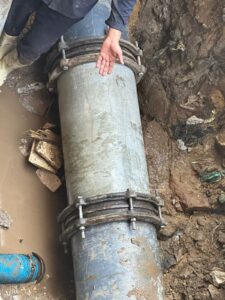 كما تم إصلاح كسر آخر في ماسورة مياه قطر ٥٠٠ بنفس المنطقة، واستعادة الأمور لحالتها الطبيعية.