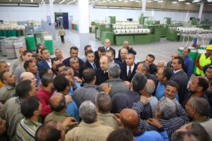 حرص الوزير على تفقد محطة الكهرباء القديمة التي تغذي المصانع القديمة، وتأكد من انتظام العمل بها والوقوف على أوضاعها التشغيلية، وقدم خلال لقائه العاملين بالمحطة خالص التعازي في وفاة ثلاثة من زملائهم مؤكدا أنه يتم مراجعة جميع إجراءات السلامة والأمان، والتشديد على إدارة الشركة برفع كفاءة المحطة وأجهزة الحماية وتحديثها وفق الخطة الموضوعة، وضرورة الالتزام بمعايير السلامة والصحة المهنية والصيانات الدورية بما يضمن التشغيل الآمن للحفاظ على سلامة العاملين.