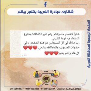 واختتم اللواء أشرف الجندي تصريحاته مؤكدًا أن محافظة الغربية مستمرة في تنفيذ خطط التطوير وتحسين مستوى الخدمات، مشيرًا إلى أن مبادرة “الغربية بتتغير بيكم” تمثل أحد النماذج الناجحة للتواصل بين المواطن والمسؤول، وتعكس رؤية القيادة السياسية في تحقيق التنمية المستدامة والارتقاء بجودة الخدمات المقدمة للمواطنين. وأضاف أن المحافظة تولي اهتمامًا خاصًا بكل شكوى تصل إليها، وتحرص على حل المشكلات بأسرع وقت ممكن، داعيًا جميع المواطنين إلى التفاعل المستمر مع المبادرة والإبلاغ عن أي مشكلات تواجههم عبر خدمة الواتس آب، للمساهمة في بناء مجتمع أفضل وتحقيق تنمية حقيقية يشعر بها الجميع.