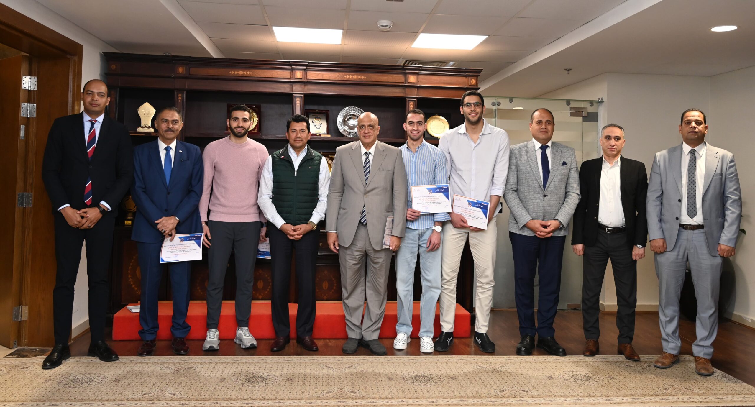 وفي ختام اللقاء، كرم الدكتور أشرف صبحي وزير الشباب والرياضة أعضاء المنتخب الوطني ، واكد وزير الرياضة خلال التكريم أن هذا الإنجاز يُعد حافزًا قويًا لبقية الرياضيين المصريين لمواصلة العمل والتفوق في المنافسات الدولية، بما يعكس قوة الرياضة المصرية وقدرتها على المنافسة عالميًا.