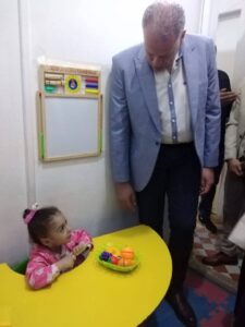 وتفقد اللواء حسين حنفى جلسات التخاطب التى تقام للاطفال بمركز التخاطب وتنمية المهارات والتكامل الحسى .