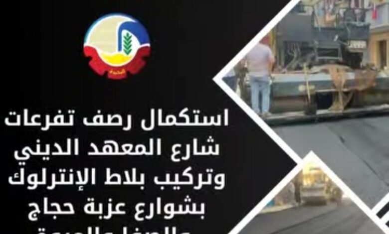 استكمال رصف تفرعات شارع المعهد الديني وتركيب بلاط إنترلوك بشوارع عزبة حجاج و الصفا والمروة وخلف مديرية الاسكان بدمنهور