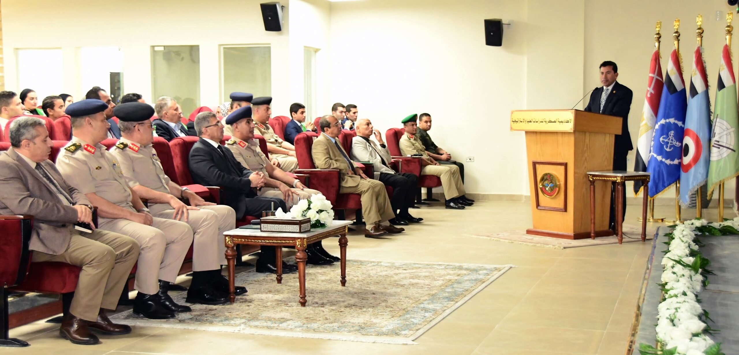 فى إطار حرص القيادة العامة للقوات المسلحة على تعزيز الوعى لدى الشباب المصرى وتأهيل كوادر جديدة قادرة على خدمة الوطن فى شتى المجالات ، وقع كلاً من الدكتور / أشرف صبحى وزير الشباب والرياضة واللواء أ ح / عاطف عبد الرؤوف محمود مدير الأكاديمية العسكرية للدراسات العليا والإستراتيجية بروتوكول تعاون وذلك لتعزيز التقارب بين الشباب والقيادات الوطنية والمساهمة فى إعداد جيل واعٍ بقضايا الأمن القومى .