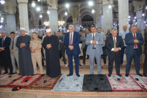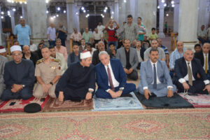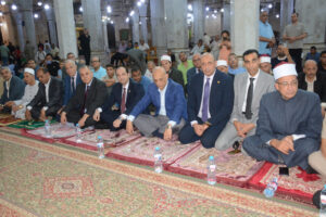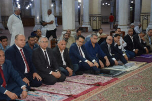 وفور وصوله إلى ساحة المسجد، حرص المحافظ على مصافحة الحضور من أئمة وعلماء الأوقاف، وتبادل الحديث الودي مع عدد من المواطنين، في إطار حرصه الدائم على التواصل المباشر مع أبناء المحافظة، والتواجد بينهم في مختلف المناسبات، بما يعكس إيمانه بأهمية المشاركة المجتمعية وتعزيز روح التقارب والثقة بين المواطن والمسؤول.
