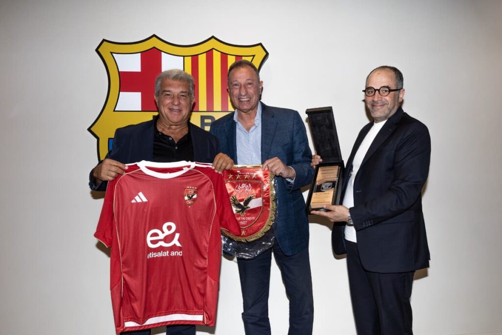 في البداية رحب لابورتا بالكابتن محمود الخطيب ووفد القلعة الحمراء برئاسة محمد كامل، ودار نقاش إيجابي حول التجربة الرائدة لنادي برشلونة في تطوير ملعبه، وكيفية دمج التكنولوجيا والتفاعل الجماهيري والاستفادة من كافة الأدوات الحديثة..