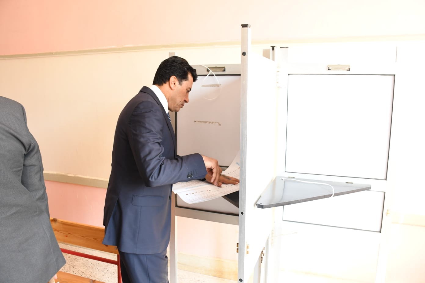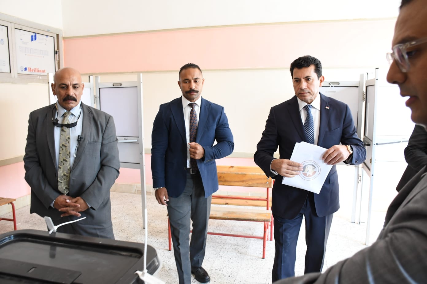 وزير الرياضة يدلي بصوته في انتخابات الشيوخ بمدينة الشروق
