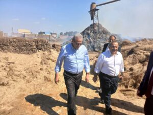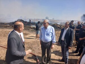 محافظ الغربية ومدير الأمن يتابعان من قلب الحدث جهود السيطرة على حريق ضخم بمصنعي كتان في شبراملس بزفتى