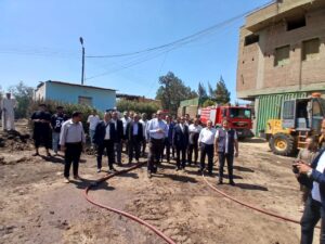 وأكد المحافظ أنه فور ورود البلاغ إلى غرفة سيطرة الشبكة الوطنية للطوارئ والسلامة العامة، جرى رفع درجة الاستعداد القصوى بكافة القطاعات، وتحركت جميع الجهات المعنية بشكل عاجل إلى موقع الحريق، حيث دفعت قوات الحماية المدنية بعدد 11 سيارة إطفاء مدعومة بخزان مياه سعة 35 طن، إلى جانب 17 سيارة فنطاس مياه منها 11 تابعة لشركة مياه الشرب و6 تابعة للوحدة المحلية، فضلًا عن 5 ماكينات “بدالات” مياه، و10 لوادر وفرها الأهالي لدعم أعمال العزل والإخلاء، كما تم الدفع بقوات الإسعاف والمرور والصحة والكهرباء والغاز لتأمين الموقع واتخاذ الإجراءات الاحترازية اللازمة.