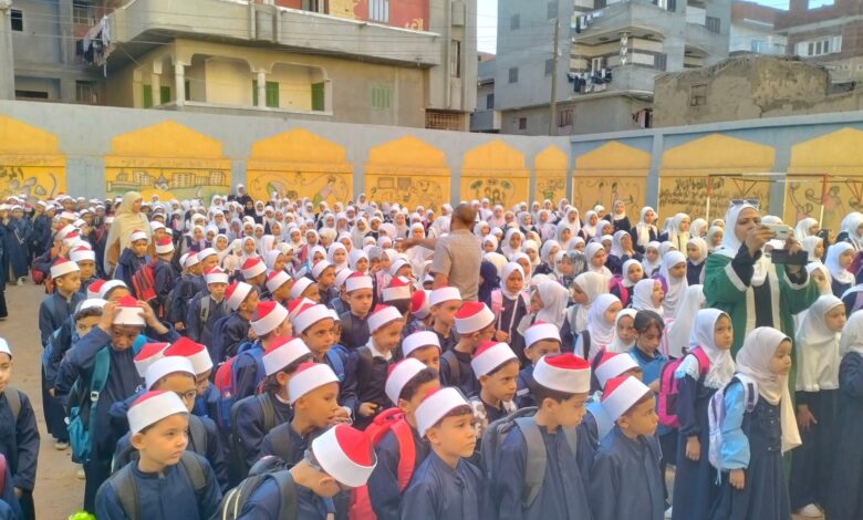 بالعمائم البيضاء والحمراء ..طلاب معاهد الأزهرية الابتدائية بالغربية يتزينون في طابور الصباح فرحا بالعام الدراسي الجديد
