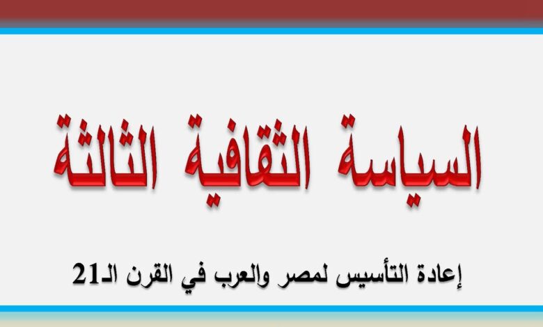 وموضحا أنه في العهد الجمهوري ارتبطت السياسة الثقافية الأولى مع ثروت عكاشة بفكرة التحرر من الاستعمار وشعاراتها (التحرر من الآخر)، في حين كانت السياسة الثقافية الثانية في العهد الجمهوري مع فاروق حسني تتسم بحالة السلام والمهادنة مع الآخر (بعد اتفاقية كامب دافيد)، كما ترصد الدراسة ارتباكات السياسة الثقافية فيما بعد ثورة 25 يناير، مرورا بالأزمات الدولية والإقليمية وصولا إلى حرب غزة، ومأزق الذات العربية وسردياتها التاريخية التي انسدت بها وتفكك بعض الدول العربية، لتطرح تصور الحاجة إلى سياسة ثقافية جديدة أسمتها “السياسة الثقافية الثالثة” استنادا إلى أنها ستكون الثالثة في العهد الجمهوري..