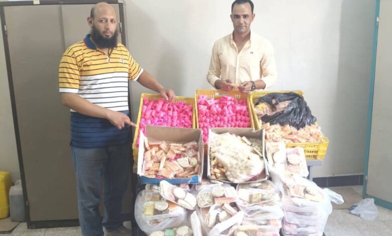 ضبط 500كجم (نصف طن) من المواد الغذائية مختلفة الأصناف ومتنوعة جميعها منتهية الصلاحية