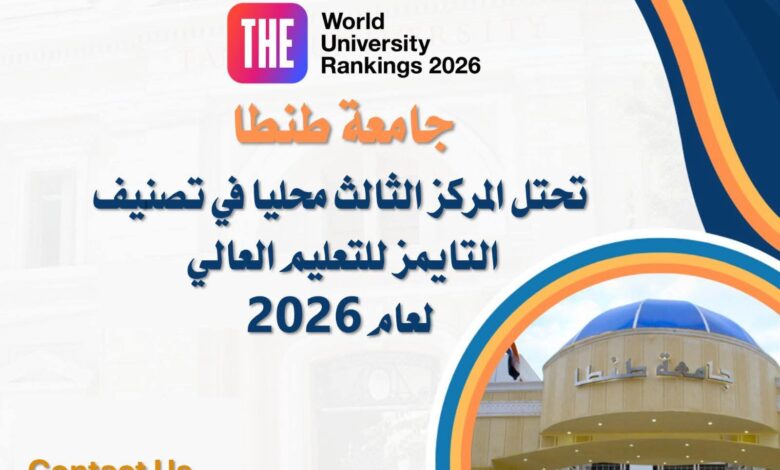 جامعة طنطا تحتل المركز الثالث محليا في تصنيف “التايمز للتعليم العالي” (Times Higher Education) لعام 2026،