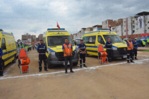 وشهدت الجولة استعراضًا ميدانيًا لمختلف المعدات الثقيلة والمركبات المشاركة، تجاوزت نسبتها 50% من إجمالي معدات المحافظة، وتنوعت ما بين لوادر وحفارات وسيارات إسعاف وأوناش ووحدات تدخل سريع، بمشاركة فعالة من الوحدات المحلية للمراكز والمدن والأحياء، إلى جانب شركات المرافق والهيئات الخدمية بالمحافظة.