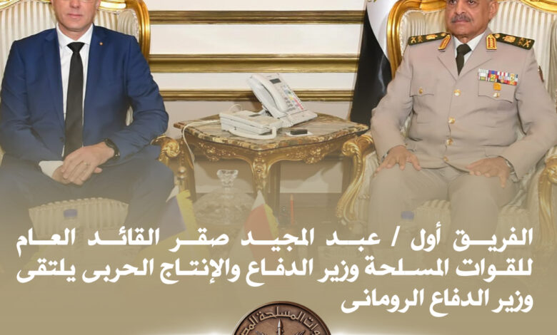 الفريق أول / عبد المجيد صقر القائد العام للقوات المسلحة وزير الدفاع والإنتاج الحربى يلتقى وزير الدفاع الرومانى