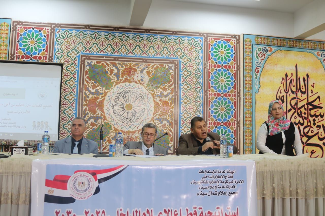 استهل اللقاء الأستاذ عبد الفتاح الإمام مدير مجمع إعلام شمال سيناء بكلمة أكد فيها اهتمام الدولة بتطوير التعليم في المحافظة، مشيرًا إلى تفوق فتيات شمال سيناء في التعليم الفني ونجاح العديد منهن في الالتحاق بكليات القمة، مما شكل حافزًا لزميلاتهن لمواصلة التعليم في مناخ داعم ومشجع.